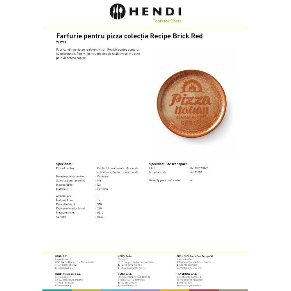 Чиния за пица Recipe Collection Brick Red, HENDI, Червен, ⌀310мм